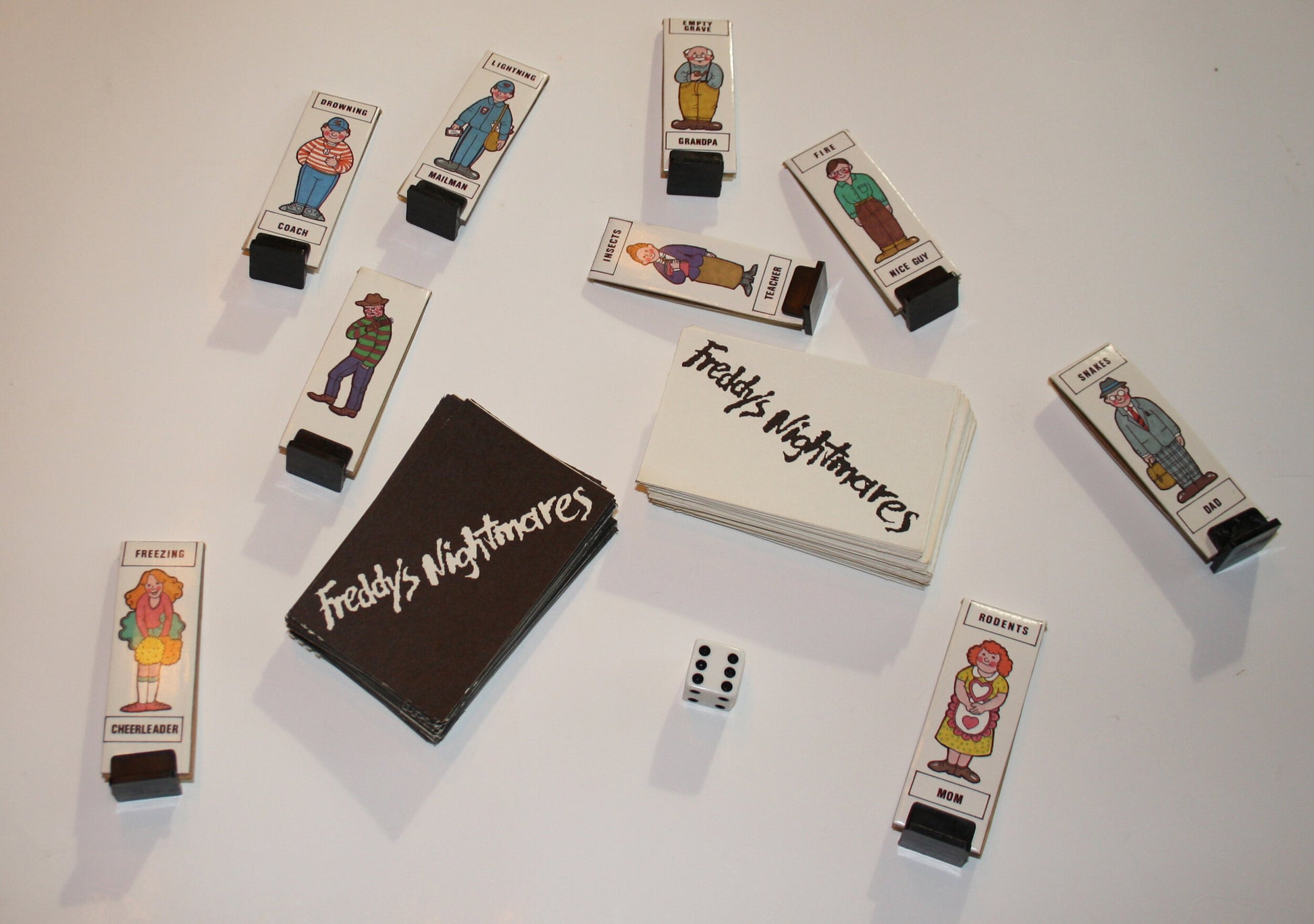 A game where you use your wildest imagination . You put cards together to make up a story that moves you through Freddy's house. You have to get Freddy before he gets you...the problem is you don't know which player is Freddy! Collect weapons and special cards & see if you can do away with Freddy! 3 or more players. Ages 8 and up.